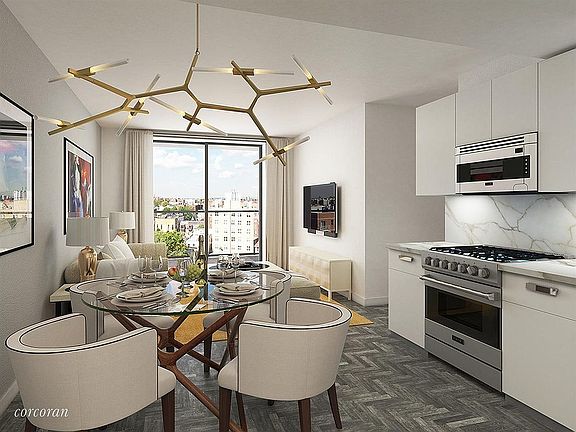 Timeless elegance, new standards. Through The Jade Condominiums timeless concrete facade and distinct interior design with luxurious fittings, the first virtue of home is comfort. Apartment 4B includes private balcony, and on the interior durable multi layer pre-finished and wire-brushed engineered Herringbone hardwood flooring, voluminous 10 foot high ceilings, and heating/air conditioning is provided by Mitsubishi smart concealed split systems, with individual climate control zoned per room for maximum efficiency. Jade kitchens feature custom cabinetry by Scavolini, the premier global Italian manufacturer known for its innovative design and superior quality craftsmanship. Superior kitchens require superior appliances, and that is precisely what to expect in a RYBAK home. Microwave and gas range oven are furnished by Bertazzoni, and refrigerator and dishwasher are paneled with the seamless custom cabinetry. Spa-like bathrooms bathroom features TOTO fixtures, Scavolini vanities, state-of-the-art Grohe shower and bath, and imported ceramics for a clean and modern aesthetic. Every apartment contains a dedicated laundry closet with the washer/dryer combo unit provided, and a Navien tankless instantaneous hot water heater. The bold aesthetic of Jade's concrete exterior facade echoes Bensonhurst's sentiment of simple, styled effectiveness while displaying the ingenuity of the building's superior construction. But that's not all: inside in the common areas at The Jade Condominium, first class amenities await: strikingly designed double height lobby w/ virtual doorman & package room, secure garage parking, state of the art roof level fitness center with city views, and an outdoor rooftop recreation area with dining + entertainment area, equipped with a wet bar and bbq grills. With so much happening now in the Bensonhurst/Gravesend Bay area, Jade is conveniently located just a few short blocks from both the N and F subway lines in either direction; along with multiple markets, shops, coffee spots, and array of exciting dining options.