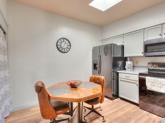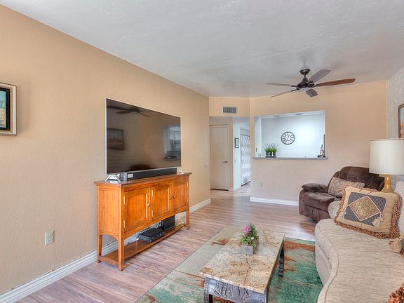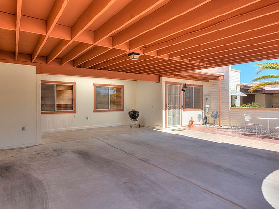 Nicely updated and ungraded, double car carpot, Large front courtyard. New in 2019 HVAC, kitchen appliances, interior paint, flooring-wood look laminate, kitchen counters/faucet.There is a Covered sitting area w/ huge skylight and Front courtyard. Other features: gutters, 4.5 inch baseboards, hand textured ceilings, storage closet by carport, tile on the window sills and super attractive furniture and furnishings.