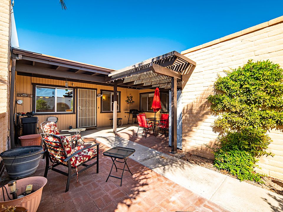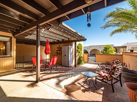 The sturdy territorial block construction means low maintenance and solid insulation. Walk through the front courtyard gate to find a peaceful place for relaxing under a cool breeze Spanish Ramada. This easy living floor plan features wood laminate flooring extending into a corner dining area with a pass-through serving window to the kitchen. The roomy kitchen is drenched in natural light from a large skylight. It has an efficient layout with white cabinetry and pullouts drawer and features a GE Convection range and Frigidaire side by side fridge. The extended space in your master bedroom gives you a reading area or room for a computer station. Both baths have been updated with executive height vanities and master shower surround has been replaced. Convenient location hear Green Valley Recreations Center too! Hobbyists and mechanically minded individuals will love the workshop where you can escape in solitude to express your artistic skills.