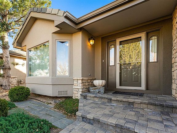 This fine patio home, main floor primary bedroom suite with bathroom (jetted tub, granite counters, marble floor), is located on the 18th fairway of the prestigious Valley Country Club. Across the street (North) is the Cherry Creek State Park. This home is very well appointed with a family room (with gas fireplace), formal dining area, office and kitchen on the main level. The gourmet kitchen has an eating area, SS Bosch & Kitchen Aid appliances, slab granite counters and easy open/close drawers. There are 2 additional bedrooms, each with their own walk-in closet, on the lower level along with a common bathroom, another fireplace and large living area. There is access to the deck from the main level and access to the patio from the lower level, both with overhead coverings and great views of the golf course. The two car garage features built-in cabinets, is insulated and the garage floor is coated. This home is conveniently located close to shopping, golf, dining, parks and easy access to E-470. Click the Virtual Tour link to view the 3D walkthrough.