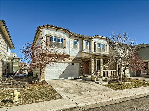 Picturesque 2 story cul-de-sac home located in a great school district and just seconds from Fallbrook Farms Park and greenway! A short drive to I-25, retail, restaurants, and more! Step inside to find soaring ceilings, tons of natural light, and luxurious finishes throughout. The main level features a spacious living room with a cozy fireplace, built-in shelving, and tons of windows. The kitchen is open to the living room creating a seamless space to enjoy with loved ones and is fully equipped for all your cooking and entertaining needs. There is a sunny breakfast area for everyday meals and a wonderful office space for the days you work from home! All bedrooms are tucked away on the second floor for privacy, including the primary suite located on its own side of the upper level. The primary suite offers the new owners an oasis with a large 5-piece, en-suite bathroom and a walk-in closet. Basement is unfinished and offers space for storage. The patio is the perfect space to enjoy the mountain views and CO spring! Recent upgrades/notable features include: fresh paint, new roof in 2022, Complete with a brand new new high efficiency furnace.Great schools, cul-de-sac lot, basement has rough-ins, and Fantastic mountain views. The yard is very low maintenance so you can enjoy your free time instead of doing yard work! The HOA takes care of the front yard. Don't miss out! Welcome home! Click the Virtual Tour link to view the 3D walkthrough.
