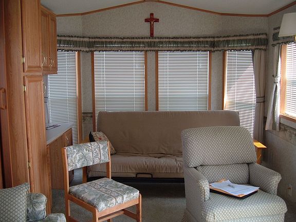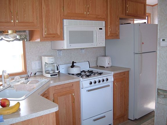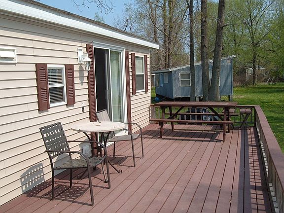 New Recreational mobile park model (2006) with huge full front trek deck overlooking a gorgeous level waterfront lot with large shade trees. The back part of the lot overlooks a wildlife refuge that is perfect for birdwatching. A causeway connects the back of the lot with the waterfront portion. There is a storage shed for lawn equipment. Great level lot with clean water for swimming and boating with a very nice dock. Located just across from Sackets Harbor convenient to shops and restaurants.
