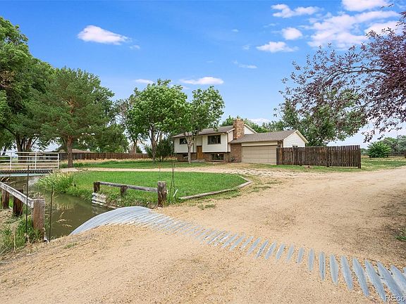 **PRIME LOCATION**PRIVATE & SECLUDED*WELD COUNTY*TRULY UNIQUE PIECE OF PROPERTY A MUST SEE! NO HOA Bring your horses! Located at the end of a private lane shared with only 2 other residence. Brighton address only minutes to all the amenities including schools. Nestled along side a beautiful open meadow and the Brighton Lateral ditch with amazing views and lots of mature trees. Incredible views from every room of this home with mountain & city views from the front and amazing peaceful meadow and pasture views from the back. You'll have a beautiful fenced pasture for horses and or other animals, a shed to store your garden or animal supplies, a chicken coop & dog run. The land is flat and offers lots of room to build a shop, barn, RV garage, etc and keep all your equipment, boats, toys on site. In addition use the open land for grazing, riding, gardening. There are 9 well watering hydrants for animals and irrigating. The possibilities are endless with this property. The house offers 2 bedrooms upstairs and a bedroom and office down but add a closet to the office for a 4th bedroom if needed. The house needs updating & TLC but clean and ready for you to make it your own. Some inside upgrades include solid oak front door, french doors in master bdrm & kitchen, oak bathroom door, wood kitchen windows, updated 5 piece bath with marble tile shower, floors, counter, water purifier, & water heater replaced 2014. The garden level has large windows so it's light and bright. Properties in this great location do not come available often. Located between I-76 & highway 85 with easy access to Denver, DIA & Boulder.
