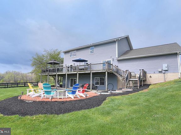 Please no Drive by's Efficient 5+ acre farmette with a full year stream along the edge of the property. Enjoy scenic panoramic sunrises, moon rises, and watch your horses in open pastures from the kitchen window or better yet, from the full length 57'X12' rear deck, slate patio or custom fire pit. View sunsets on the 8'+ deep wrap around front porch. Property features a circular driveway, oversized 3 car side load garage and easy access to the 35'X70' CENTER ISLE BARN with 3 stalls, tack room 2 storage rooms, loft, separate electric meter, water, large storage area for equipment and fenced paddock. Paved sports area or equipment parking is an additional plus! This well maintained home boast owner pride! THE MAIN LEVEL features hardwood floors, a sizeable living room, gourmet kitchen renovated in 2013 with a center island and breakfast bar, granite counters and upgraded cabinets. Adjacent breakfast area has easy access to the full length rear deck. Large dining room(currently used as an office) looks over the back pasture with access to the rear deck. Brand new refinished expansive laundry/mud room off the garage that can handle children pets, and tack. UPPER LEVEL has the large primary suite and features a soaking claw foot tub, separate shower and large walk in closet. Two additional large en suite bedrooms with shower and walk-in closet. All bathrooms and bedroom walk-in closets renovated in 2017. LOWER LEVEL was renovated in 2017 featuring custom built in bar, barn wood wall, walk out to slate patio. Custom full bath with shower, large bedroom, Exercise room and mechanical room. New fridge in 2020 Dishwasher and cooktop 2019. Laundry room renovated in 2022. Carpet 2016. Garage doors 2014. Roof, siding and trim wrap 2013. HVAC 2011. Septic is a 5 bedroom septic and was pumped in 2021. Invisible fence in place(but would need to be activated). Mature landscaping and large vegetable garden plot. Close to wineries and breweries. Come discover your new home!