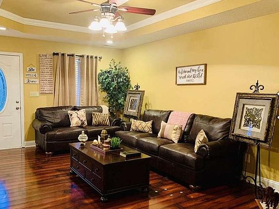 Beautiful 3 sided brick 4 bedroom 2 bathroom home with covered porch and 2 car garage. The living/family room has tray ceilings and a gas log fireplace. Kitchen consist of eat in dining area. Master bedroom has tray ceilings, spacious walk-in closet and a full bathroom. New appliances (microwave, oven, dishwasher) and hot water heater installed. New Roof replaced in 2019. This home sits on .44 acres which gives you a spacious front and back yard to enjoy. Saturday and Sunday viewings only, serious inquiries please. If interested in seeing this home and would like to make an appointment please text Vee McDonald at 256-658-3887.