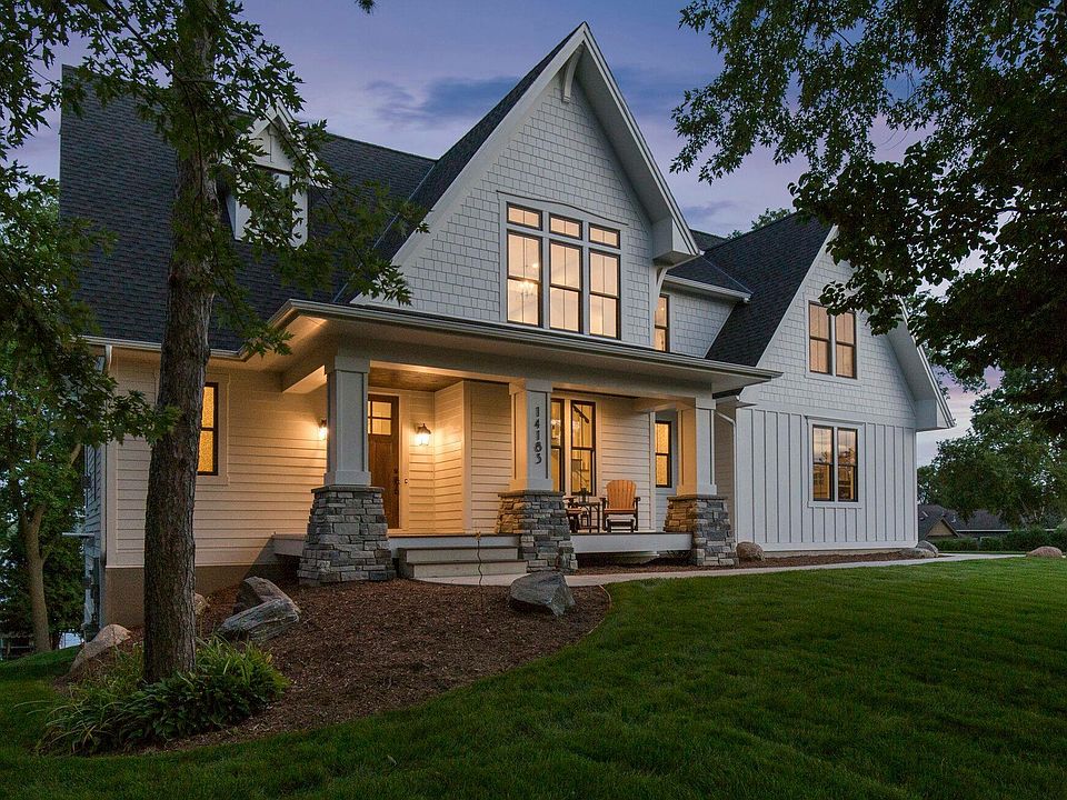 David Charlez designed modern farmhouse on the lake offers stunning main Lower Prior Lake views. This hard to find newer construction lake home includes high end finishes and features throughout. The main level features a barrel roll ceiling, french oak flooring, office, spacious center island, Thermador appliances, large pantry w/barndoor, maintenance free deck, shiplap mudroom, electronic blinds, smart home technology, sonos surround sound system and a dog rinse. The master suite offers views that will make you feel as if your on vacation everyday. The lower level includes a temperature controlled wine room, wet bar, fitness room, guest bedroom and walk out to the lake. Great location on Prior Lake's "Street of Dreams." Lake season is just getting started. Enjoy the home this summer!