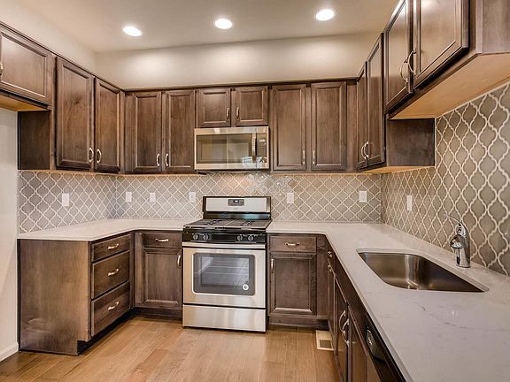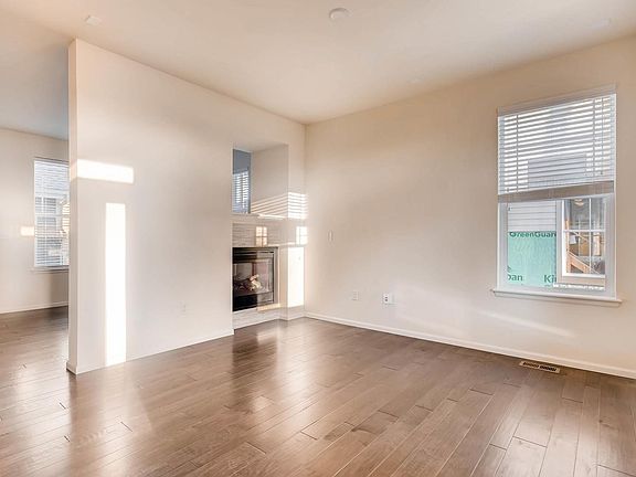 Highly Upgraded Low Maintenance Home with Outdoor Living and Panoramic Mountain Views! Step in off the covered front porch and fall in love with these luxury finishes, like dramatic wide plank flooring, 2-sided fireplace with art niche, and expansive windows and natural light. The truly gourmet kitchen features highly upgraded dusk cabinetry with hardware, custom backsplash, Quartz counters, and stainless appliances. The family and dining rooms both have big picture windows and plenty of space for endless furniture layouts and that big tv you've been dreaming of. The convenient home command center/mudroom and main floor laundry make staying organized a breeze. Upstairs there are two spacious master suites, both with coffered ceilings, en-suite baths, and walk-in closets. Move right in with window coverings, landscaping, a great deck and fenced yard, and an unfinished basement for storage. Fallbrook Farms is a master planned community close to shopping, dining, trails, and so much more!