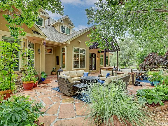 Broadlands, a master planned golf & pool community! This jaw-dropping custom two-story stucco & stone quiet oasis with 5000 finished SQFT including a main floor primary suite & finished basement is located in the 'Gated Island' on a cul-de-sac! This light, bright & very clean home has 5 bedrooms, 4 bathrooms, a loft, 2nd floor flex room (or 6th bedroom) & an oversized 3 car garage! A generous main floor primary suite is a private retreat with a gas fireplace, set-stone accent walls, two walk-in closets & direct access to the patio! The beautiful primary five-piece luxury bathroom with dual vanities, cubed glass, pendant lighting & a passive steam shower is complete! The high-end gourmet kitchen with stainless steel Thermador appliances/hood, is complete with double ovens, built-in microwave, island, pendant lighting, breakfast bar, eating nook, large pantry, marble counters & distressed brick backsplash! The family room is a continuous room just off the kitchen with vaulted ceilings, floor to ceiling stone wall surrounding a gas fireplace, custom built-ins & surround sound! Formal dining room with custom built-ins, powder room, laundry room, office and primary bedroom suite complete the main floor that includes extensive hardwood flooring! Second floor hosts a beautiful loft/office, 2 large bedrooms, A flex room (or another 2nd floor bedroom) & a dual sink full bathroom! The finished basement includes a family/TV/REC room, bar, 2 large bedrooms with walk-in closets, a 3/4 bathroom & 2 very large storage rooms! The spectacular outdoor living is just lush & breathtaking with a huge flagstone patio, gas line fire-pit & built in grill with bar that is ready for your summer BBQ's with family & friends! The private patio & side yards have many mature trees, flowers & planter boxes & look out onto the walking trail... just beautiful! This home has been updated & loved, & has high-end finishes throughout! Easy Commute to Denver, Boulder and DIA! Adams 12-5 Star Schools!