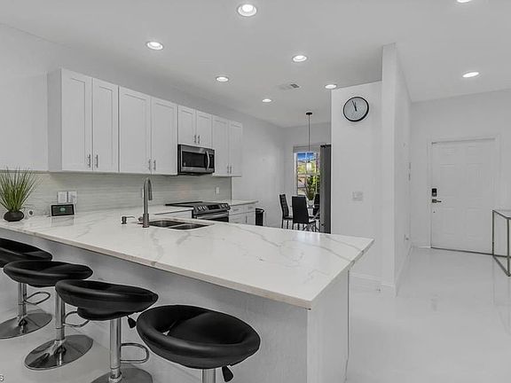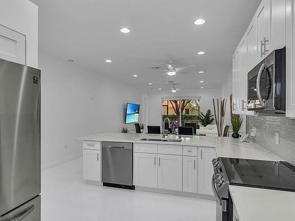 White shaker-style cabinetryUpdated lightingFresh interior paintQuartz countertopsHeated lakeside swimming poolCeiling fansBbq area