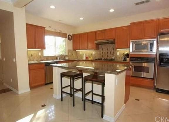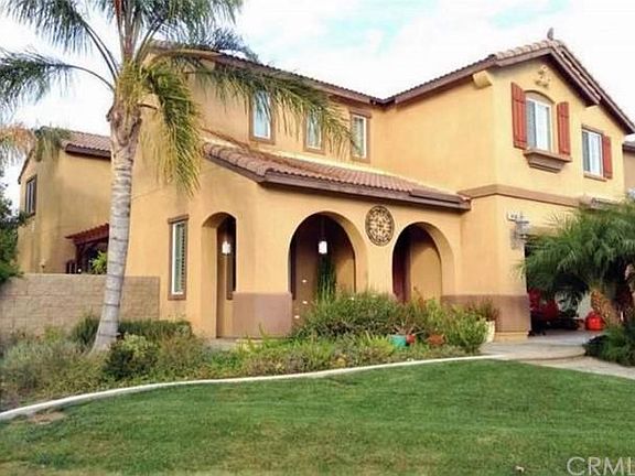 Elegant 4 bedroom home in Corona on a beautifully landscaped lot. Features Entry with mosaic medallion, Formal Dining Room, Formal Living Room with an abundance of natural light throughout. Upgraded kitchen with beautiful granite countertops and a generous amount of storage cabinets. Home boasts of Beautiful Shutters throughout, Custom paint, and Marble Tile flooring with granite inlays. Plus a study/office downstairs that could easily be converted to a 5th Bedroom. Upstairs features an oversized Master Bedroom, with his/hers walk-in closets and Jacuzzi tub. Upstairs also features a large Bonus room perfect as a media room, family room or den, or an optional 6th Bedroom. There is also a hallway built-in desk with granite top. The Backyard features a beautifully landscaped patio, outdoor lighting, a child's play structure and cozy firepit perfect for your evening gatherings! A lovely side patio rounds out this gorgeous home.
