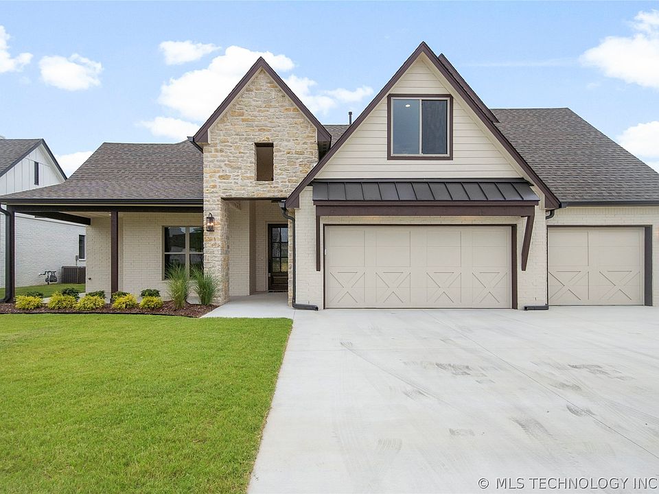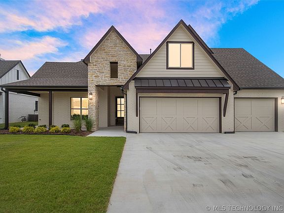 The Ruby Plan. Quality construction with amazing attention to detail! 4 bedrooms - Master and 2nd bedroom (or study) down. Kitchen opens to over-sized Family Room with adjacent breakfast room. Full Brick , energy efficient home with impressive front and back patio and porch. New neighborhood near the new Bixby West Campus (opening 2020) with 2 stocked ponds and play area.