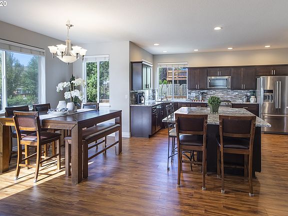 Beautifully updated, move-in ready Bull Mountain home in an idyllic location overlooking the neighborhood greenspace park. A spacious, open floorplan greets you as you enter the front door, with high ceilings and modern finishes in the expansive living and dining rooms. Enjoy entertaining in the dream kitchen, with ample seating in the nook and around the over-sized kitchen island, plus storage galore in the walk-in pantry! Slab granite countertops, gorgeous cabinetry, and upgraded fixtures were recent updates in the kitchen, laundry, and all baths. Rounding out the main level is a dedicated office space with walk-in closet, (could be a bedroom) plus a convenient powder room.Upstairs, you'll find the master suite with cozy sitting area, elegant bath, and walk-in closet, plus three additional large bedrooms. The family room with media system would make a fantastic retreat for adults and children alike...or a quiet haven to work or study from home. Out doors, enjoy summer barbecues on the new composite deck or gather around a firepit on the spacious terraced patio. Fully fenced yard with room for gardening or play, and generous storage space available in the walk-in under the house. Rare 3-car garage for ample parking. One of the largest lots in a wonderful, established neighborhood with lovely views of the park and valley below. Come see for yourself! 2020-10-01