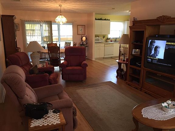 Ready to move right in ! concrete block home in Spanish Fairways, open floor plan with 10x20 pourch coverd and enclosed . This part of park allows a pet with some resrictions .A/C 1 year old and recent updated water heater. 55 and older community.