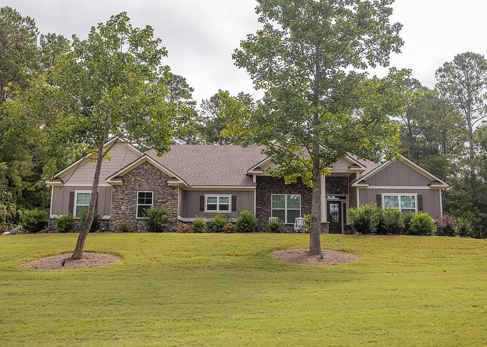 Welcome to this beautifully crafted, less-than-3-year-old home sits on a generous lot in the heart of Harris County—just 10 minutes to Harris County High School and 20 minutes to Ft. Benning. Thoughtfully designed and full of charm, this home offers a rare mix of comfort, style, and practicality. Stepping inside, you'll find custom crown molding throughout and a warm, inviting stone fireplace in the family room. The gourmet kitchen is a true showstopper, featuring modern finishes, a large kitchen island with breakfast bar, and a dedicated dining room perfect for hosting. The primary suite includes a separate tub and shower, double vanity sinks, and plenty of space to unwind. A spacious laundry room and versatile mudroom add to the home's everyday functionality. Enjoy your large open back yard with private covered patio, or take advantage of the portable building with slab and power—ideal for a workshop, storage, or home office. Plus, a brand-new gas-powered generator means you're always covered. No HOA, plenty of space to spread out, and beautifully finished from top to bottom—this one truly checks all the boxes.