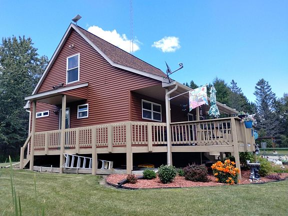 Fantastic peaceful and private setting where a pond side deck and pergola greet you. This 2 to 3 bedroom, one and a half bath home features beautiful hickory kitchen cabinets with granite counters, tile backsplash, and newer stainless appliances. has been updated and refurbished inside and out. with new air conditioner, new roof, 2023, New furnace, updated siding and new seamless gutters. With calm, winding walkway, and beautiful perennials, roses, bleeding hearts, and lovely orange lillies. Property features two new pole barns in addition to the 10 by 30 garage/workshop. 40 beautiful acres, with two blinds for you to clear out some of the abundant wildlife lured in by the many fruit trees. This property is a must see for the buyer looking for peace, quiet, comfort, and utility.