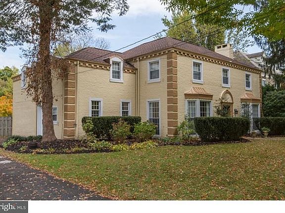 Welcome to this gracious and elegant 3000 Sq. Ft Center hall Colonial, situated on a beautiful half an acre lot in the heart of Elkins Park. This wonderful family home offers great space and modern amenities. There are unique architectural details such as archways, beamed ceiling, random-width wood-pegged floors, crown molding and floor to ceiling windows throughout the main level. The first floor feature a inviting spacious foyer, lovely living room with fireplace, seven floor to ceiling windows and built-ins, a large elegant dining room, a fabulous family room with sliding doors to flagstone patio overlooking beautiful back yard, spectacular kitchen that includes granite counters, custom cabinets, imported tumble marble backsplash, center island with gas cook-top, stainless still appliances, double wall oven, two dishwashers, two sinks and a large pantry closet. Off of the kitchen there is a very attractive breakfast room sitting room with slate floor, beamed ceiling and sliding glass doors to back patio and yard, completing the main level is an office, powder room and backstairs. The upper level includes a large master suite with master bath, hall bath, second bedroom with French doors to roof deck, 3rd large bedroom and 2 additional bedrooms suite with the third bathroom and a laundry room, this wing can be accessed through the back stairs or through the main upper level. The back yard is like your own private park with beautiful specimen trees and bushes. Walking distance to the Elkins Park train Station and Creekview Coop. Easy to show, immediate possession possible. Do not miss this fabulous property.
