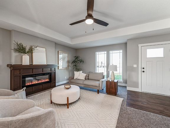 You will want to stop out and look at this new floor plan built by Jerry’s Homes. The Great Room boasts tray ceilings, adding a touch of elegance to the space. It features an electric fireplace, creating a cozy ambiance and a focal point in the room. The kitchen has an open layout, making it ideal for socializing and entertaining. It includes a breakfast bar for additional seating and functionality. The kitchen also features a walk-in pantry, providing ample storage space for food items and kitchen essentials. The kitchen’s base cabinets are Pecan color, while the upper cabinets are white, countertops are Quartz offering durability and a modern look. The dining area with a slider leading to the deck, providing a seamless transition between indoor and outdoor living spaces. The primary bedroom features trey ceilings, adding a touch of sophistication to the room. It also includes a walk-in closet for ample storage space. The primary bathroom is equipped with a dual vanity, topped with Quartz, providing a stylish and functional space for personal grooming. The lower level of the home is a walkout, offering easy access to the outdoor area. It has the potential to be finished into a recreational room, a fourth bedroom, and is already plumbed for a full bathroom, allowing for future customization and expansion.