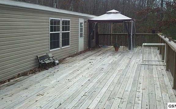 This nice, spacious home is located in the East Tennessee mountains and offers all that mountain living affords. This 2007 built home is on a permanent foundation making it eligible for several financing options. The 16 ft wrap a round deck provides all the outdoor entertaining space one could want and the interior is all open and spacious with laminate wood flooring, huge garden tub in master bath and lots of kitchen cabinets. The living area has a beautiful, stone, wood burning fireplace for those chilly East Tennessee nights. Community Water and Sewer System Brokered And Advertised By: EAST TENNESSEE REALTY GROUP, LLC Listing Agent: MICHELE BRYAN