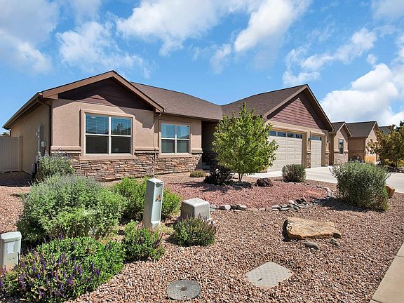 This beautifully appointed home 1419 Blue Lake Dr located in Montrose Colorado, blends comfort with luxury. The oversized garage with a painted floor offers ample room for storage or hobbies. While inside, refined upgrades set can be found throughout the home. A built-in wine cooler, pull-out cabinet drawers, an oversized stainless steel kitchen sink, and a spacious pantry make the kitchen as functional as it is stylish. Custom blinds throughout the home and remote-controlled ceiling fans in three of the five rooms add everyday convenience. The living area is anchored by a custom wood mantel, creating a warm, inviting space. Step outside to a partially covered patio, perfect for evening gatherings or quiet mornings. The elevated washer and dryer simplify laundry, and the crawl space with an vapor barrier adds peace of mind. All of this is tucked into a quiet, well-located neighborhood just minutes from the hospital, dining, and shopping. Call ShowingTime at 800-746-9464 to set up an appointment.