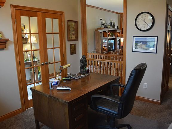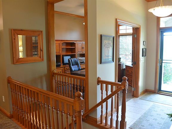 Hard-to-find ranch plus finished basement and three-car garage. Very private, well-landscaped yard with water views across the street. Split bedroom floor plan and den on the main floor with a rec room, full bath and additional bedroom in the basement. Basement is plumbed for a future kitchenette. Outside features include a three-season room (insulated floor) and deck with storage beneath. Other features include Andersen 400 Series windows, foam insulation exterior walls, maple cabinets and crown molding. Ceiling heights as follows: 9' poured basement walls; 9' ceilings on the main floor; and 10' ceilings in the great room and den. House is in very good condition and close to schools, interchanges, YMCA, shopping and trailways.