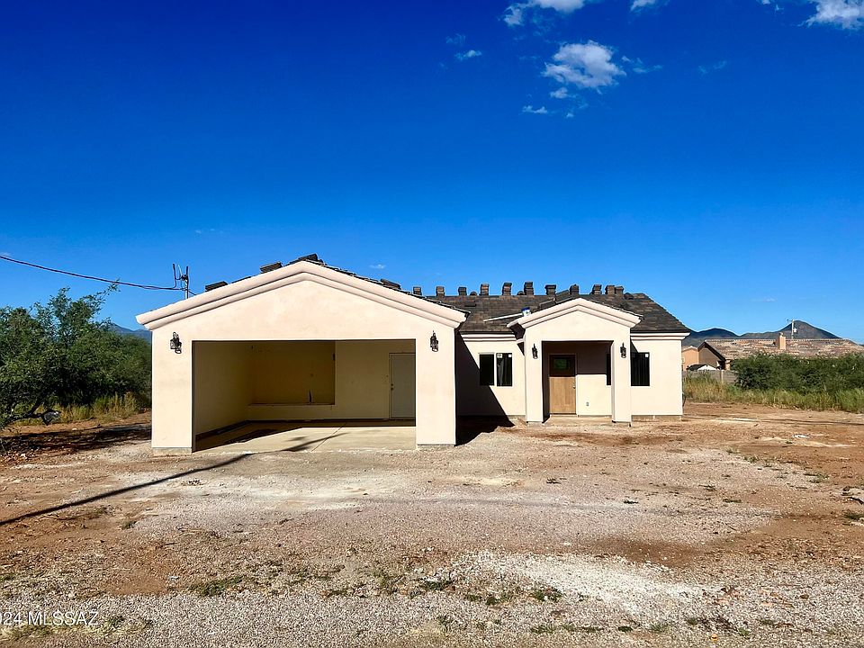 This New Construction is the perfect home. With 1580 of livable square footage, sitting on a completely usable flat lot. The property features an open concept floor plan, with vaulted ceilings, ceramic tile throughout, large walk-in showers, and modern light fixtures. The kitchen has granite countertops, stainless steel appliances, custom cabinetry, and an island. The Primary bedroom is spacious, with a custom walk-in closet, and dual sink vanity. As you step outside to the covered back patio, you will notice that there are endless possibilities to create your dream back yard. Only a 6 minute drive to Rio Rico Highschool, and the Freeway. This home is in its final stages of construction and ready for you mid October.