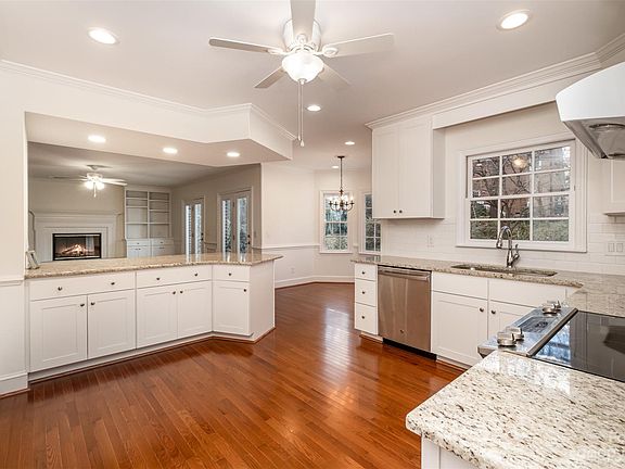 Welcome to an exquisite four-bedroom, two-story haven nestled in the prestigious Carriage Downs community. As you step through the grand entrance new, gleaming hardwood floors guide you through the main level, where an expansive living room adorned with built ins flanking a beautiful gas fireplace opens seamlessly to an entertainer's kitchen.