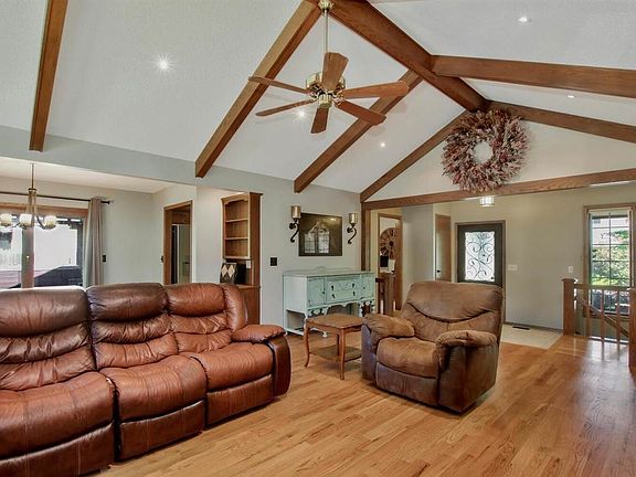 Welcome Home! This 4 bed, 3 bathroom home is ready for you! This house has character with a brick front and wood beams on the vaulted ceilings inside! As you enter, you will notice the real hardwood floors throughout the living room, dining room and hallways. The living room has a wood burning fireplace for those chilly evenings. There are two dining spaces, the larger dining room and the breakfast area in the kitchen. The kitchen has stainless steel appliances, Corian countertops and lots of cabinet space. On the main floor you will find the large master bedroom with attached master bath. The master bathroom has granite countertops, shower and walk in closet. There are two additional bedrooms...and ALL THE BEDROOMS HAVE WALK IN CLOSETS! The basement has a large family room, separate game room and large bedroom with attached full bathroom that could be used as a second master. There is room in the basement to add a 5th bedroom with an egress window already present. The BACKYARD IS AN OASIS! The IN GROUND, SALT WATER POOL (converted in 2017) is perfect for summer!! The HOT TUB (installed in 2018) stays with the home and makes this yard the perfect family hangout spot on the covered deck! There is a small storage shed in the backyard and the EPOXIED GARAGE IS HUGE measuring at 25'23'5. The home also has a 50-year composition roof!