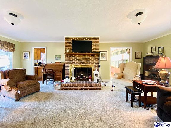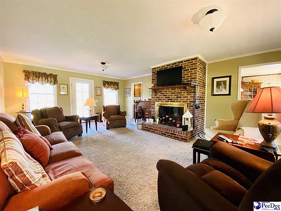 This attractive one and a half story brick home with vinyl siding is conveniently located in one of Dillon's most desirable areas with 4 bedrooms and 2 and a half baths this home comes with a number of amenities that are listed below. The spacious kitchen and dining area with custom cabinetry and work island opens up to an inviting living room. The kitchen comes with all appliances within such as the refrigerator, dishwasher, oven & stove, and microwave that makes this house a completely move in ready home. The master suite is located downstairs with his and her vanities, a walk-in closet, and a beautiful tiled shower, as well as another bedroom and ½ bath. Step upstairs and you'll find two gigantic bedrooms that share a full bathroom with a study area, and an amazing walk-in attic storage space for easy access to your things. The home also offers a huge great room on the opposite side of the home so that friends and family can make plenty of noise on the other side of the home and best of all is the size of the utility room! Furthermore, this well-kept, manicured lawn that sits on over a half acre lot with a welcoming front porch with a walkway leading to the two-car garage that comes with an ample supply of wood for the wood burning fireplace within, a nice size outdoor storage building or workshop with electricity within. Pets and children are welcomed here with a fenced in backyard, and enormous deck perfect for family entertainment, or to just sit back and relax and enjoy the sunset. This home is perfect for all with an easy commute to surrounding area with being only minutes from highway 9 and highway 301, and I-95. Only minutes from the North Carolina/South Carolina border with less than 50 miles to Fayetteville or to the beach, and less than 30 miles from Florence and Lumberton.