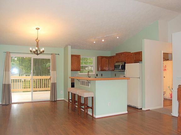 Open flr plan in this transitional bi-level. Kitchen views dining & living space from counterbar w/custom butcher block countertops. Vaulted ceilings & large windows bring in the natural light. Fresh paint, neutral decor & large closets. Finished LL w/fireplace & half bath. New rear deck overlooks expansive fully fenced yard. Quiet neighborhood.