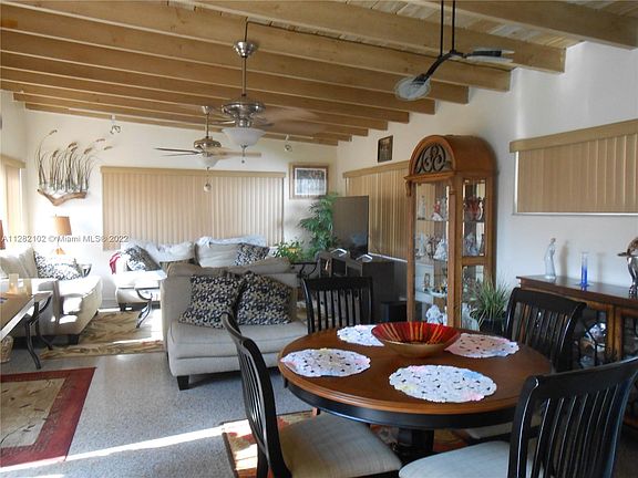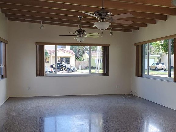 This home has it all! - An oversized family room with a beautiful wood ceiling and exposed ceiling beams, a cute kitchen, two large bedrooms that feature extensive closets with built-ins, hurricane impact windows (and shutters for additional safety), a private fenced yard, a carport, extra outdoor storage, original terrazzo floors, and the list goes on. This home was impeccably cared for by one owner for over 30 years and makes a wonderful home. It is priced to rent fast and easy to show. Don't miss this opportunity.