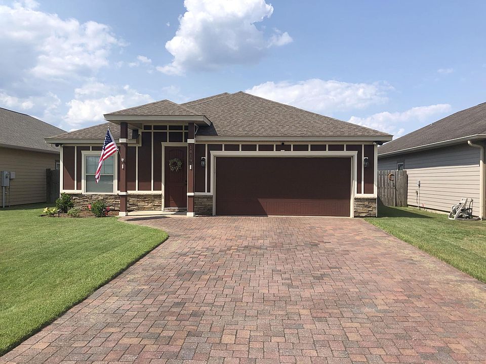 Well maintained 4 bed / 2.5 bath home in the secluded and peaceful community of Hidden Ridge. Close to Nature Walk Golf Club which provides a great set of walking trails in either the morning or evening. The home is conveniently located near Hwy 390 and located just down the road from the newly renovated Lynn Haven Sports Complex and 2 miles from the brand new Publix on North Hwy 390. As you drive-up to the home, you'll notice a beautiful paver driveway, with the home's exterior featuring a Hardie board and stone veneer finish. Step inside to tile flooring throughout the foyer, with the homes first bedroom located to your left along with the adjacent guest 1/2 bath. Kitchen offers warm, wood cabinetry, granite countertops, and Whirlpool stainless steel appliances. A spacious double-door pantry closet is located just off the dining area for additional storage. Also off the kitchen area are two additional bedrooms that share a jack-and-jill bathroom with shower/tub. The large master bedroom is located in the rear of the home and boasts a large walk-in tile shower with dual showerheads. The covered back patio looks out over the fenced-in yard with built-in irrigation system. Small dogs and cats may be accepted upon owner approval with a $200 non-refundable pet fee per pet, max of 2 pets. Additional photos available upon request. Renter is responsible for utilities and lawn care. Owner pays all HOA fees. No smoking permitted.