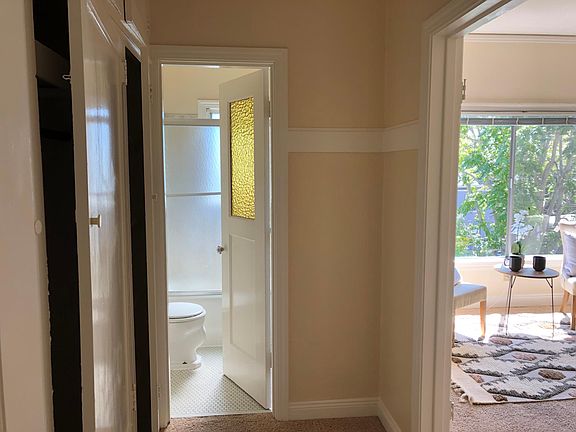 Come live at the Mediterranean Apartments in Central Alameda, a beautiful historic 1930s security building conveniently located between Park and Webster Streets, the shoreline and freeway access! This bright and spacious top floor unit has new carpet, fresh paint, a cute eat in kitchen, and large closets. The building has coin laundry and a pool for seasonal use. Cat OK with additional deposit. Showings available weekdays 9-4:30 and Saturday 9-2pm. Good credit and 3x combined income required to qualify. Tenant pays electric only Month to month or 1 year lease for same rate