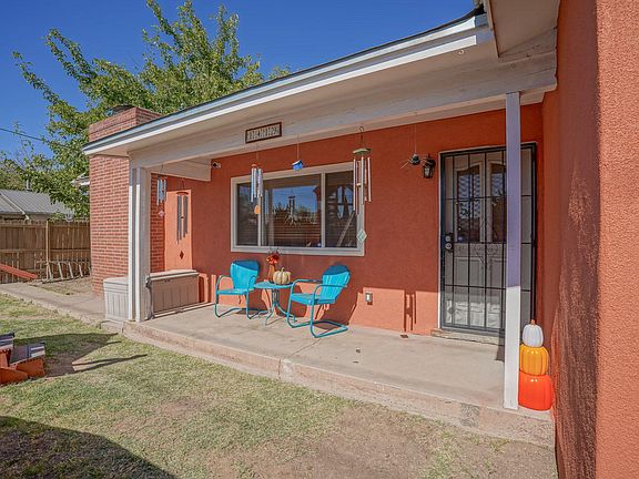Brand new stucco with a 6 year warranty! Charming home in the heart of Los Ranchos with inlaw casita, studio or office space with parking and private entry Pro-panel metal roof,and vinyl windows make for a beautifully maintained and remodeled property to call your new home. Gleaming clean tile and authentic hardwood wood floors, private patios, two car garage. Remodeled bath rooms and kitchen. Pleanty of counter space, stainless steel appliances with gas range, warm natural wood hickory cabinets. Large island. The two light living areas with large windows and sky lights offer a cheery happy place for family and friends. Plenty of room for everyone to gather both indoors and outside.