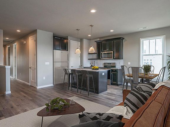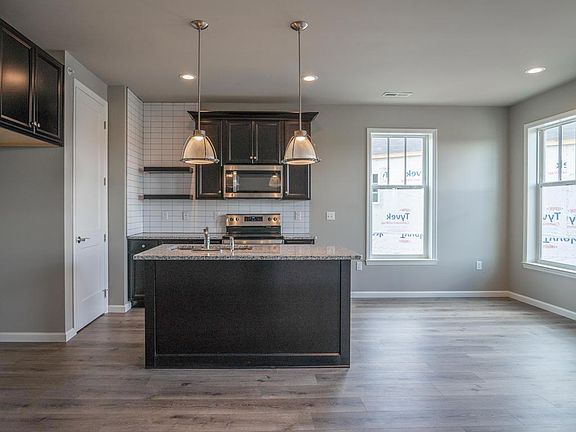 Move in Ready Today! Live in the center of it all at Hastings! Enjoy fun, food and fitness right on your block with restaurants, a brewery, yoga studio, free 24-hour fitness center and juicery just steps from your front door. This move in ready end townhome offers 1,258 sq ft of low maintenance living with 2 bedrooms, 2 bathrooms and an attached 2-car garage. A modern kitchen with large walk in pantry opens to the breakfast room and great room with a wall of windows overlooking Hastings Green. In the back of home is an Owner's Retreat with a large walk-in closet and private Owner's Bath along with a second bedroom, full bath, dedicated laundry closet and extra closet space. The lower level offers a spacious entry connected to an attached 2-car garage. This end townhome comes with espresso maple cabinetry, stainless steel appliances, quartz countertops, tile kitchen backsplash, recessed lighting and much more.