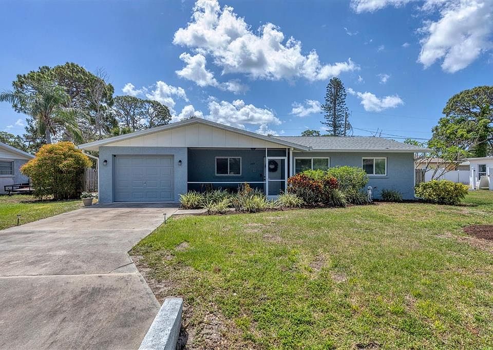 LOCATION ... LOCATION!! 1/2 mile from the South Venice Ferry! This charming home has 2 Master en-suite bedrooms. 1 bedroom has an added separate entrance that could be used as a rental.Both bedrooms have newer vinyl flooring. The recently upgraded screened front porch leads you to an open floor plan where the light shines into the lovely Florida room; which is enclosed with a mini split A/C. There is an 8 foot glass pocket sliding door inside to separate the Florida room or add to the living space. The roomy backyard is completely fenced for privacy (and your furry friends)! It has a cement pad for a BOAT or RV & a cement patio is right outside the Florida room for outdoor entertaining. A shed is in the corner for storage. The home added features are: HURRICANE RATED WINDOWS, ROOF, SEPTIC, ATTIC INSULATION, stainless steel appliances all replaced in 2019. The WATER HEATER was replaced in 2022. The home has a smart thermostat, an owned water softener & it has a separate large INDOOR laundry room. Wood blinds added throughout in 2019.The South Venice Ferry is only eligible to this community by joining the South Venice Civic Association, for a nominal fee, which provides access to the ferry to take you to your private beach & includes access to the community BOAT/KAYAK LAUNCH.