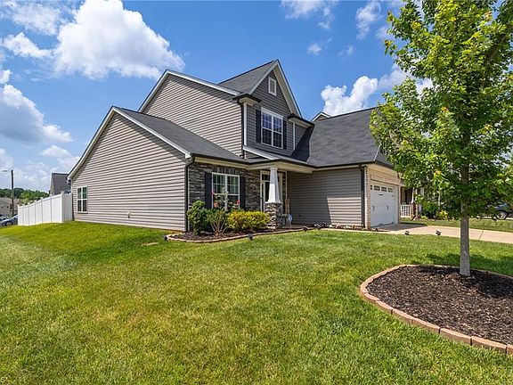 Step into luxury living with this stunning corner-lot home in Kernersville! Featuring granite countertops, a farmhouse sink, stainless steel appliances, elegant cabinets, this kitchen is a culinary paradise. In this open floorplan you will find beautiful hardwood floors and a stone fireplace, creating a cozy yet sophisticated ambiance. The primary bath is a sanctuary with granite counters, a tile shower, and a garden tub. Trey ceilings in the dining room and primary bedroom add a touch of grandeur. Upstairs, a spacious loft and bedrooms offer ample space for relaxation. Complete with blinds, an alarm system, a 2-car garage, and a privacy-fenced backyard, this home is both secure and serene. With 4 bedrooms and 2.5 baths, including a main-floor primary, this home is the epitome of comfort and style. *Professional photo's and floorplan will be uploaded on the 5th of June*