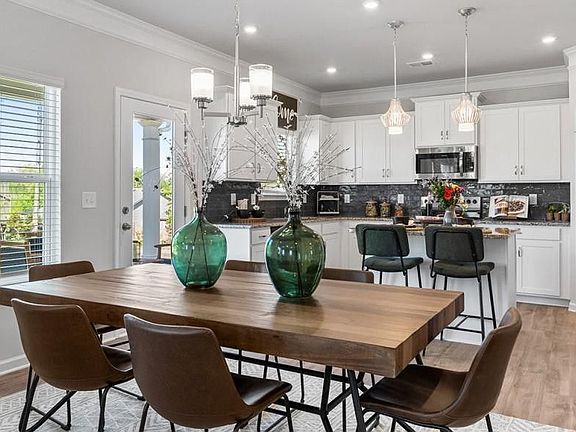 Move in Ready February 2023!. The McGinnis plan by Smith Douglas Home! Located in the Waterside at Riverwalk community. This popular plan has a wide welcoming front entry. LVP floors on the main level and Quartz counters with tile backsplash, upgraded cabinets and center island in the kitchen. Kitchen and family live to the rear of the home. Patio off kitchen. Three secondary bedrooms and Owner's suite on second story located off an open loft. Both floors have nine foot ceiling heights. Photos representative of plan not of actual home being built.