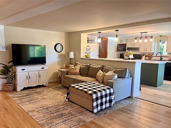 Beautifully Remodeled Bungalow situated on almost a whole acre with mature trees. From the sunlit entry, you will feel welcomed in from the cozy front porch. The expansive brick fireplace is the first focal point. Enjoy cozy nights by the fire all winter long. The open floorplan leads you to the spacious and neutral kitchen complete with appliances. Plenty of storage in the original built in seating and shelving. The newly added island will give you plenty of extra counter space for entertaining. The master bedroom features a walk in closet and full master bath. First floor laundry is conveniently located off of the kitchen with even more storage. The spacious one stall garage/shed will fit all of your toys and tools. Outside the rear of the home, the privacy is abundant. Complete with a firepit for those friendly gatherings.