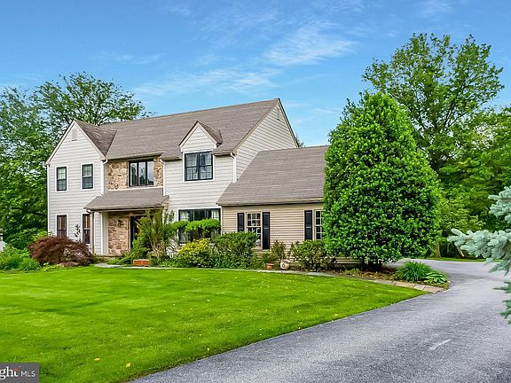 This colonial on a cul-de-sac lane has it all! Feel welcomed as you approach the beautifully appointed 2 story stone front with a porch entry, leading to the sunny foyer and igniting the vision for your next home. To the left is a full formal living room with gorgeous natural light. To the right of the foyer is a full formal dining room with wainscotting and plenty of room for holiday entertaining. Straight ahead is the open kitchen with granite counter tops, a full center island and wood floors throughout. The restful views of the expansive backyard from this space are just what your family needs to begin and end your days. The sliding glass doors off the kitchen lead to the timber-tech deck, surrounded by hardscaping and flowering shrubs. Continuing from the kitchen to the open family room, you'll love the custom built in bookshelves, cathedral ceiling with skylights and a beautiful stone hearth fireplace, perfect for cozy ,cool nights. The first floor also has a nicely sized powder room, laundry room and mudroom with access to the garage as well as an outside entry. The second floor has 3 generously sized bedrooms, hall bathroom, all to the right of the stairs. The Primary suite is to the left and includes a renovated bathroom, complete with stand alone tub, skylight and separate large walk-in shower. For additional living space, the basement is fully finished ideal for recreation/media room and also a separate room, currently used as a home office. Recent updates include Hardy Plank Siding ( 2024 ), New Black Framed Windows (2024). HVAC replaced (2018). The Mill Creek development is at a prime location off of Boot Rd. and within a mile of Route 202, convenient to restaurants and shopping in the charming town of West Chester.