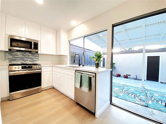 Welcome to 1419 N. Stoneyhaven Lane! This 4 bedroom 2 bath home has been impressively remodeled! These townhouse style homes are unique, they are recorded with the County as Attached Single Family Residences, potentially allowing for a lower interest rate and FHA and VA financing. Step through large double doors into a bright open layout with large windows. Every surface has been updated including new paint, high quality vinyl plank flooring, an impressive bath with a large walk in shower, recessed lights and chandeliers with a little bling! The kitchen features 42" tall, white shaker cabinets, quartz counters and stainless appliances including a Bosch dishwasher and 5 burner, gas, convection range that doubles as an Air-Fryer! Upstairs find designer carpet, 3 secondary bedrooms plus a primary bedroom with 2 closets and another beautifully remodeled bath. There's even a linen pantry and storage under the stairs. Outside find a large covered patio, and oversized 2 car garage. The garage is brightly lit and freshly painted. Inside the walls, most of the plumbing has been replaced and the electrical panel is new. The Parkdale Community offers a pool, hot tub, club house and more... The home is located on the Buena Park, Anaheim border just a few blocks from Knotts Berry Farm. Schedule your showing today, you won't want to miss this one!