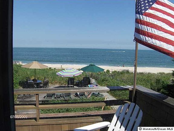 Spectacular Ocean Front w/your very own private white sand beach. Built in 1929, this home has never had any history of storm damage & was untouched by Sandy. One-of-a-kind property comprised of 3 lots stretching from Street to Ocean w/parking for 10+. Classic beach house restored w/cedar shake siding, custom moulding, original pine floors and magnificent ocean views. Home sits at 17.4 ft above sea level (1.5' above the new FEMA flood maps). Own your piece of the beach & move in for summer 2014