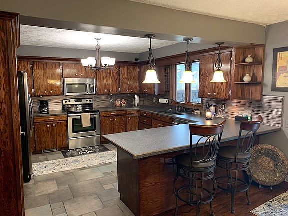 Updated ranch style home with custom made cabinets in kitchen, newer flooring throughout, newer windows. Built 26x50 shed in 2015 with heat and insulation, shed, deck, covered patio, all new concrete in front & driveway with remote gate to large building. Newer siding and roof. Underground sprinklers. Wood fireplace (previously gas). Security system will stay. Epoxy floor in garage.
