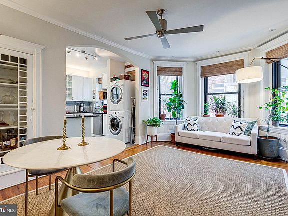 Gorgeous 2BR/1.5BA Beaux Arts co-op with a den and balcony in a Logan Circle location that can’t be beat. The Hawarden’s exquisite historic architecture creates a grand welcome to the amazing home. A delicate balance of classic elements and modern updates blend seamlessly with original exposed brick, ornate trim work, and hardwood flooring. Magnificent archways, pocket doors, and large windows frame the impressive layout. The stylish tiled kitchen wows with stainless steel appliances, granite countertops, glass tile backsplash, and a gas range along with ample storage and prep space. Dine at the snack bar, surrounded by an opulent decorative fireplace and built ins, or head to the private balcony and peep the action on 14th Street. Relaxed elegance awaits in the primary bedroom with large windows, custom walk-in closet, and a posh half bath. The second bedroom mirrors the sophistication of the primary with a walk-in closet and wonderful light. The hall bath is luxuriously tiled with a frameless glass waterfall shower and a dual vanity. The bonus den also works as a third bedroom or many other uses. Stacked laundry and plenty of storage complete this graceful home. Owners at The Hawarden adore their close community where neighbors become friends. With a rich history, The Hawarden was one of the first apartment buildings built in DC and is on the National Register of Historic Places. With impeccable style and care, it is easy to see why the homes are rarely available. 14th Street on the next block brings all of the crave-worthy dining, great shopping, and nightlife close to home. Easy errands are moments away with Amazon Fresh and several other markets close by. U St, Shaw, and Dupont Circle nearby offers even more to see and do. Commuting options abound making carless living a reality. *Total monthly co-op fee breakdown: $762 operating expenses and management, $238 taxes = total $1,000/month*