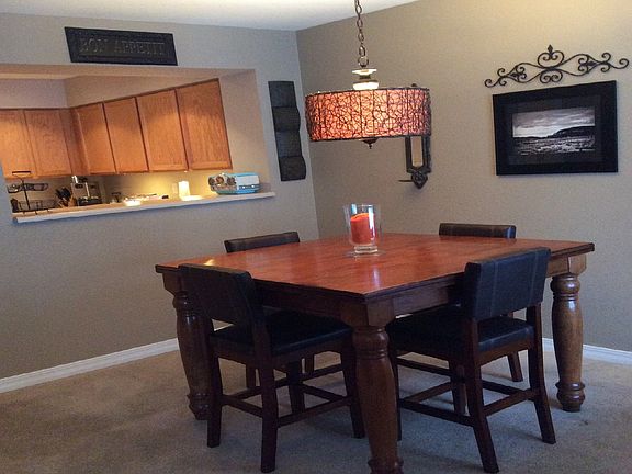 Lovely Townhome with beautiful patio. Open main level floor plan with gas fireplace. New Paint throughout. Kitchen is open to Dining/Living Room. Both upstairs bedrooms have en-suite baths. A/C. Near schools, park, and shopping. 1-car detached garage. Buyer to verify conformity of basement bedroom.