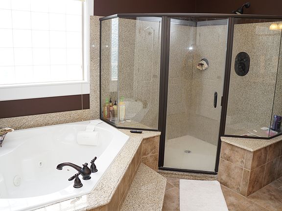 This luxurious custom built home on the lake has it all! Open floor plan w/a gourmet kitchen has full sized commercial refrigerator/freezer, custom Lyptus cabinetry, granite countertops, a pot-filler above the gas range & walk in pantry. Main floor master suite features a coffered ceiling, walks out to the deck & has a luxurious bathroom w/dual rain shower heads, corner whirlpool tub, dual vanities & huge walk-in closet. The upstairs shares a Jack-n-Jill bathroom, loft area & separate laundry. The walk out basement is AMAZING - featuring a wet bar w/built-in keg, game/exercise room & a custom media room w/projector & a secret room. There are 64 wired speakers throughout the home & many of the tv's stay. Huge salt water pool with diving board is the perfect place to play & entertain. Custom built dock on a 3 acre lake. Sprinkler system. 2 separate laundry hook-ups. Central vac with kick dust pan. Alarm system with night vision video surveillance. 4 car garage. New floors, paint & more.