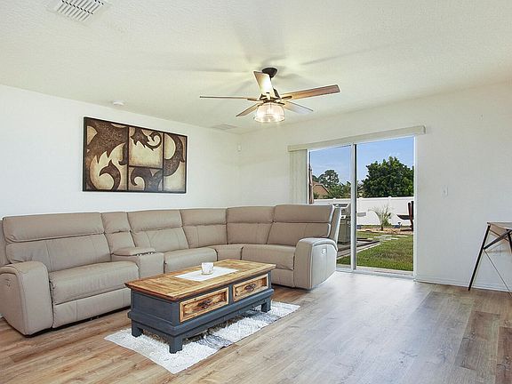 Built in 2021, this new home boasts beautiful luxury laminate flooring, 3 bedrooms plus a spacious den/office, and a fully-fenced backyard with endless space for pets, children, and privacy. You'll enjoy the meticulous cleanliness this home offers at every turn, and if you're a big shopper, you'll adore the oversized walk in closet, accommodating even the largest of wardrobes. Open the slider to your backyard and you'll appreciate the new, white vinyl fence, expansive outdoor patio area, and custom-built seating area for weekend parties or after-work relaxation. This home was fully inspected the week prior to being listed by one of the largest, most reputable home inspection companies on the Treasure Coast, and the report is available upon request (saves buyer $300-400).
