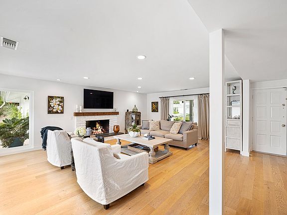 Welcome home to this ranch style, single-story home on an oversized lot in the heart of Dover Shores. Through the front gate, you're welcomed by lush, mature landscaping surrounding a cozy porch alongside the entry through the double doors. Upon entry, you'll find the main living area filled with an abundance of natural light coming through the wall of glass windows and sliders that border the yard. The spacious, private primary bedroom sits off the living area, away from the rest of the bedrooms. All bathrooms have been recently renovated, hand crafted black paneling in the living room and new counter tops throughout showcase a more modern look. Outside the primary bedroom sits the dining area off of the open kitchen which features Thermador stainless steel appliances and wide plank white oak wood flooring, the remodeled kitchen faces the second living area and beyond that, private back yard which is the show stopper of this property! Lush greenery lines the edge of the spacious property to ensure privacy, and the sparkling pool is surrounded by artificial turf and concrete coping. This backyard pool and patio area seamlessly flow into both living areas inside the home, making it the ultimate entertainment home. An oversized second master bedroom sits on back of the home with direct access to the backyard. An office and additional bedroom sit near the back of the home separate from the master. Large 3 car garage finished with plenty of storage. New 200 amp panel, AC, roof, tankless water heater, and much more!