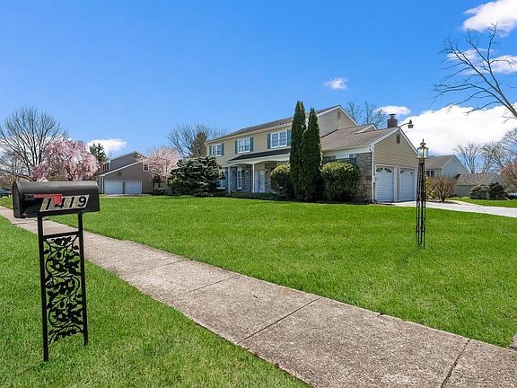 Welcome to the development of Yardley Hunt in Pennsbury School district! Four bedrooms, 2.5 bath Colonial home with two car garage and full unfinished basement, situated in a cul-de-sac. Enter thru the foyer with steps to the right leading up to 2nd floor. Main floor, living room, dining room leads into eat in kitchen overlooking large family room with wood-burning fireplace and door to go out back to flat level yard. Then you have powder room and laundry room and two car garage. Upstairs you have primary bedroom to the right with bonus room to use as office or as you desire, built in shelving in both the bedroom and bonus area. 10x15 walk in closet with heat and full bath with skylight which has tub and walk in shower. At the top of the steps is full hall bathroom and to the left are three substantial size bedrooms. Linen closet in hallway as well. Home does need some updating but overall you will love this home with plenty of room.