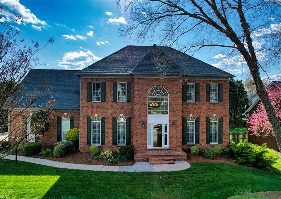 GREENSBORO - Westridge Valley 5Br 3Ba with Pool! No HOA! Elegant traditional brick 2-story home has many updates including custom moldings, palladium windows and more! New covered porch and deck (2022) overlook 40,000 gallon saltwater heated pool. Open floor plan features updated eat-in kitchen with abundant cabinet storage, large island, granite countertops, tile backsplash and stainless steel appliances, including new dishwasher (2023), gas cooktop & gas stove. Primary suite with custom closet and bath remodel (2021). New HVAC 2022. New roof & gutters 2023. Exterior trim painted 2023. Tankless natural gas water heater & natural gas heat. Natural gas dryer connection in spacious laundry with cabinetry. Greenhouse with water & power. Charge Point electric car charger in the garage. Great location near Westridge/Pinetop Swim & Tennis club and around the corner from new state of the art Claxton elementary school opening August 2024. Move-in ready!