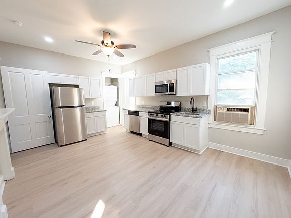 This charming 1-bedroom, 1-bathroom upstairs unit offers everything you need for comfortable living. Situated in the desirable Original Highlands neighborhood, you'll be just a short walk from Bardstown Road's restaurants and shops. The newly renovated kitchen/living space includes brand-new Frigidaire appliances, an in-unit dishwasher, and washing machine and dryer. The bedroom features two closets and an attached bathroom with a shower/tub. Both the bedroom and kitchen/living space contain ceiling fans and heating and cooling mini splits. Additional features include off-street parking, fenced-in yard, Wyze security cameras, and a keyless lock with a keypad password. This unit is non-smoking and no pets are allowed. Water bill and LG&E will be split 40/60 between the renter and landlord. A one-year lease is available, and a background check is required. Rent is $975/month with a refundable security deposit of $975. All information is deemed reliable but not guaranteed and is subject to change. We look forward to hearing from you! - Gross monthly income 3x monthly rent - Proof of source of income - Credit score 650+ - Good credit & history of on time payments, housekeeping & property maintenance - Occupancy limit of 2